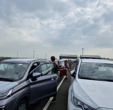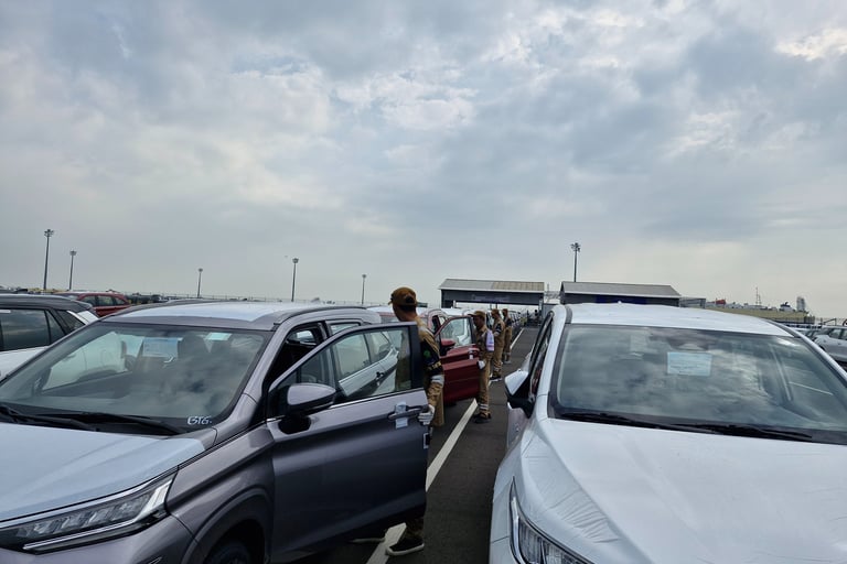 Setelah lolos pemeriksaan dokumen dan unit di LQ1, unit kendaraan akan dipindahkan ke area parkir sementara oleh driver CC.