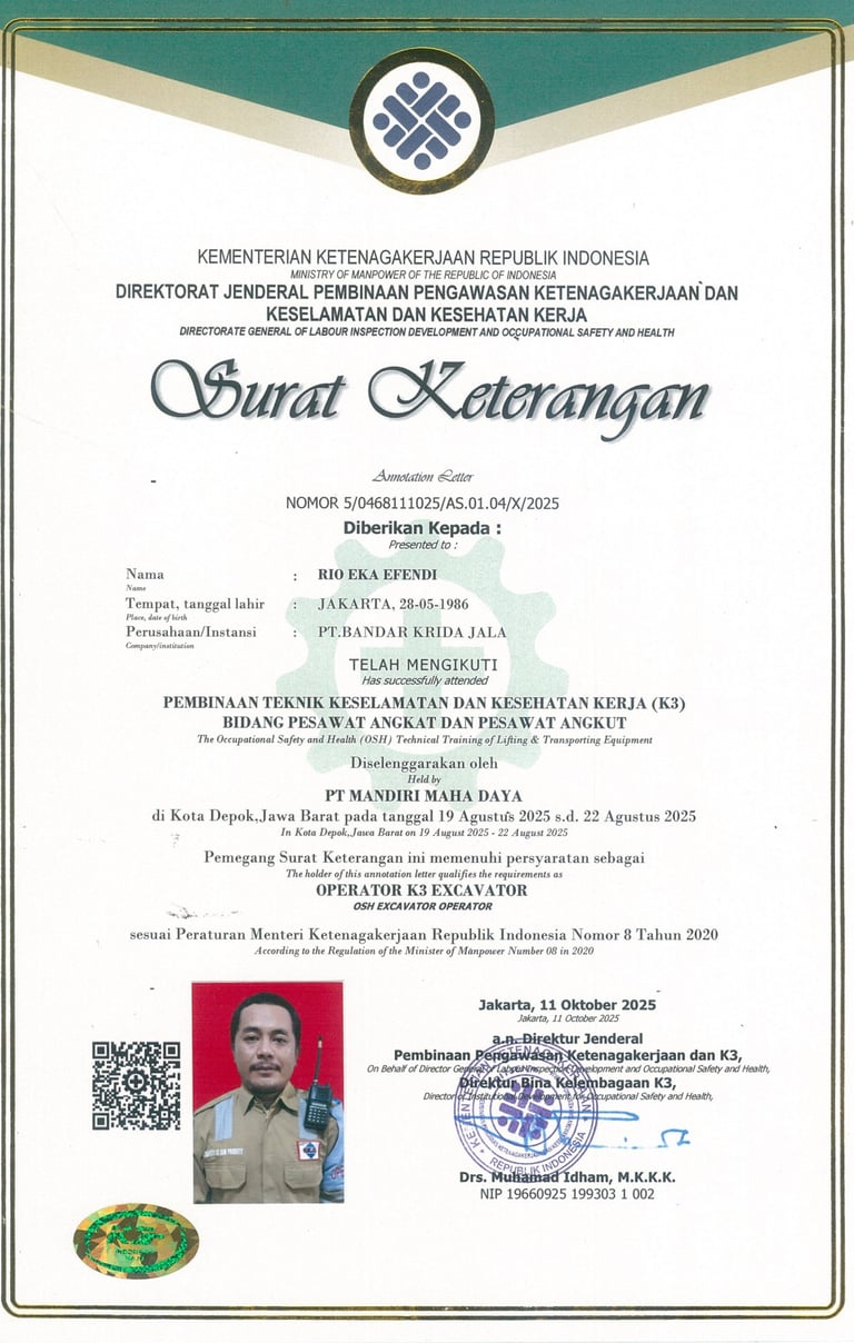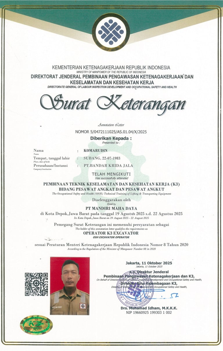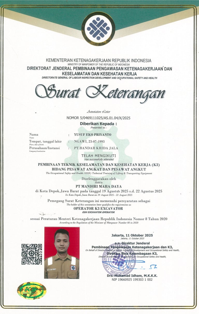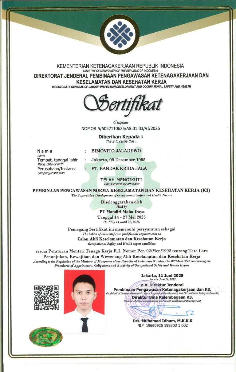 Bekerja dengan motto Zero Damage dan Zero Accident.