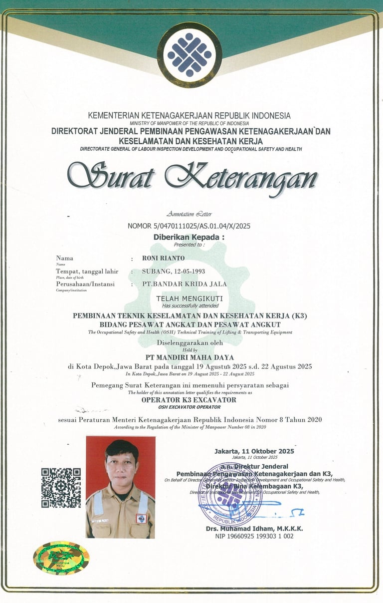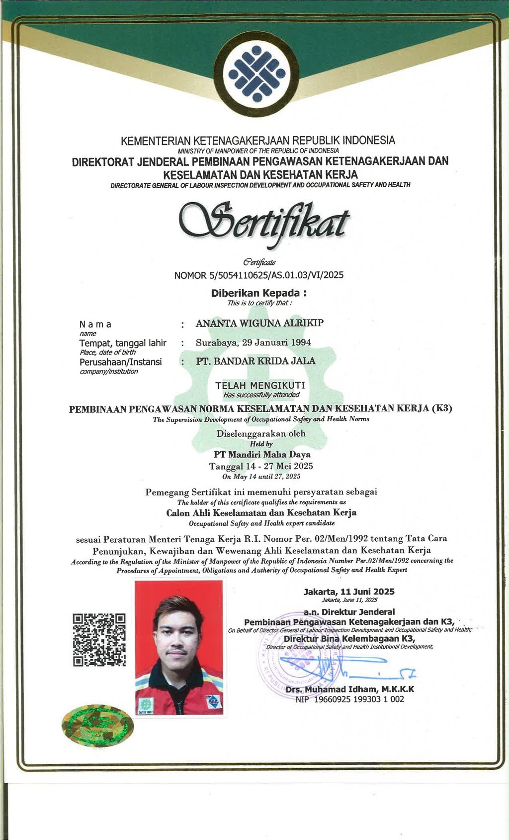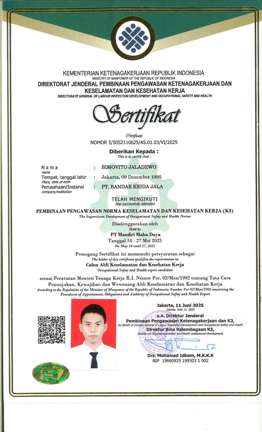 Bekerja dengan motto Zero Damage dan Zero Accident.
