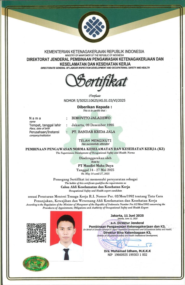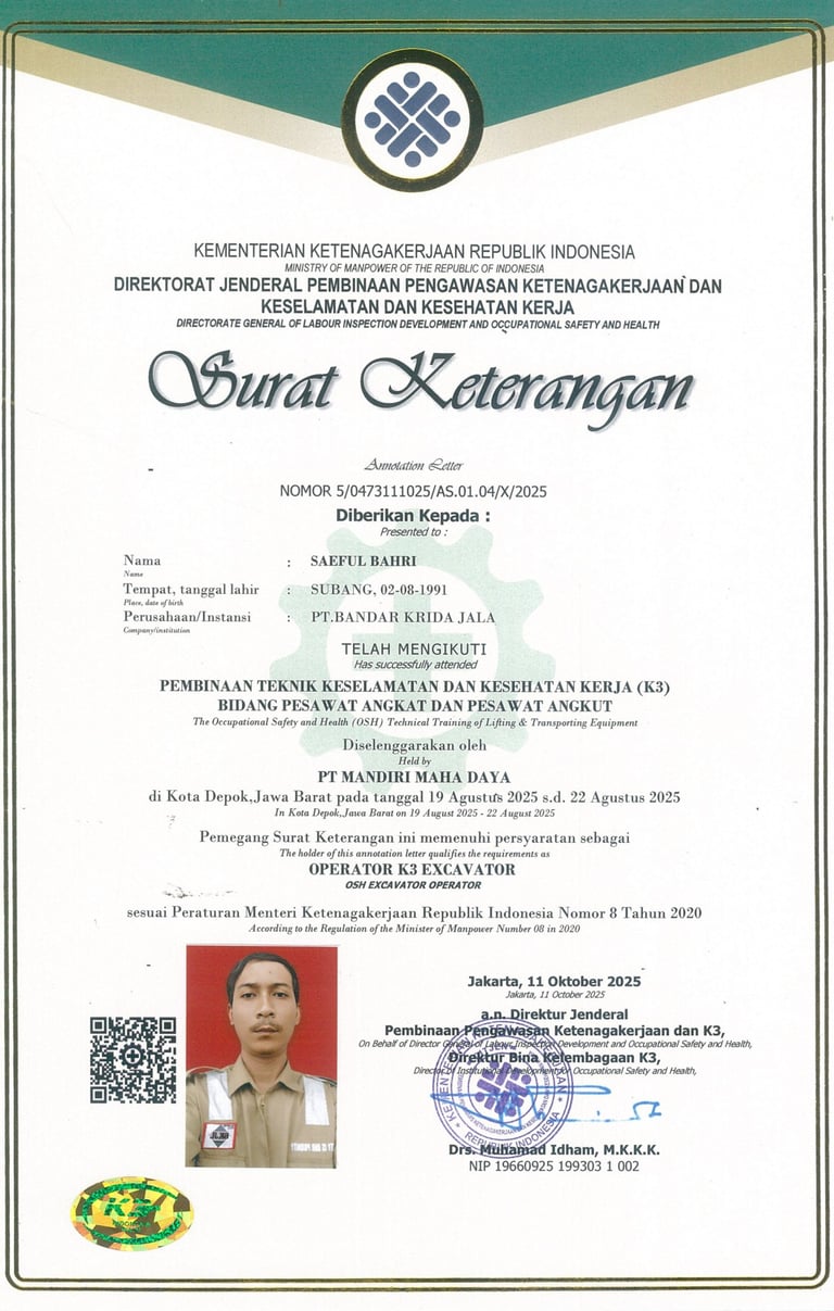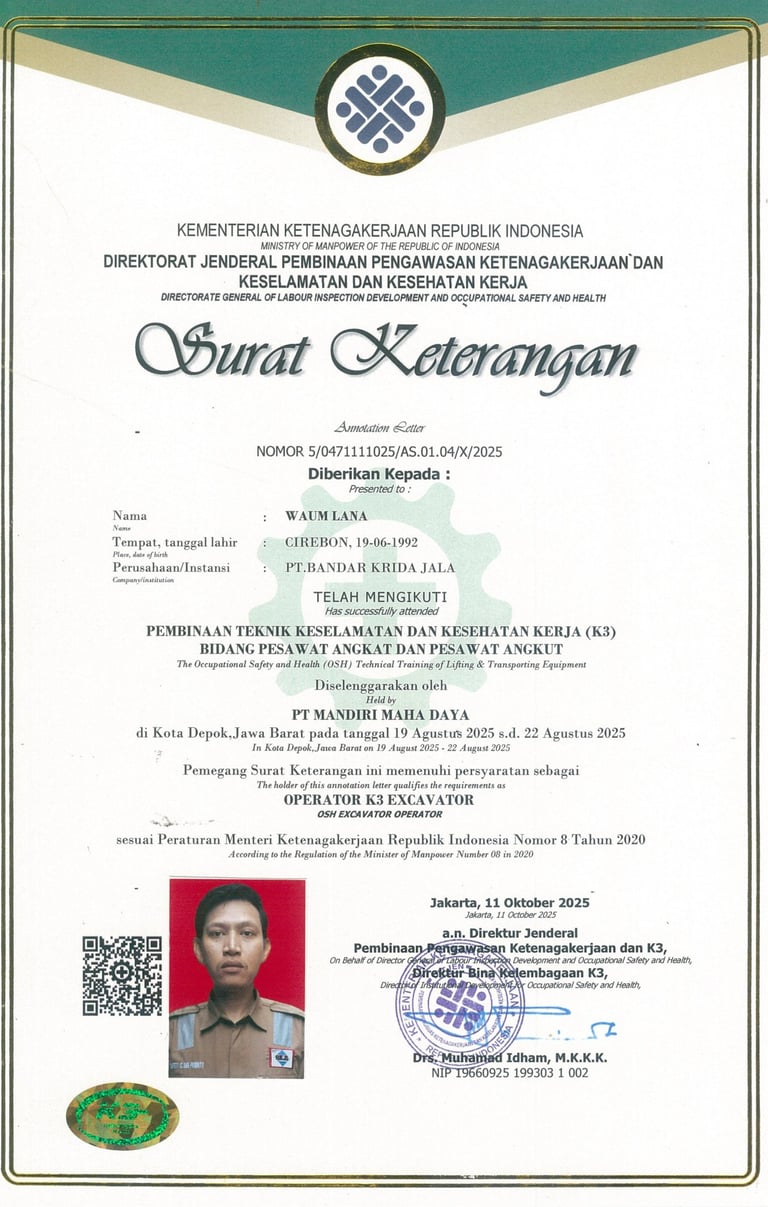 Bekerja dengan motto Zero Damage dan Zero Accident.