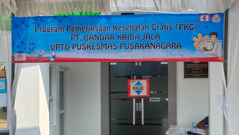 PT. Bandar Krida Jala (BKJL) partnered with Pusakanagara UPTD Community Health Center to conduct a Free Health Screening Program (PKG) at the BKJL office in Kotasari Village, Pusakanagara District, Subang Regency. The program served all BKJL employees and local residents.