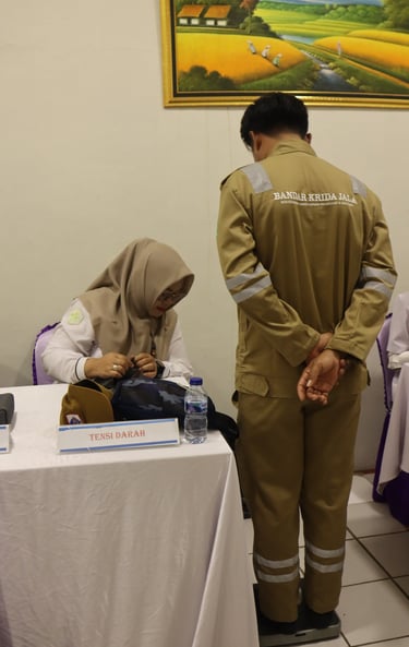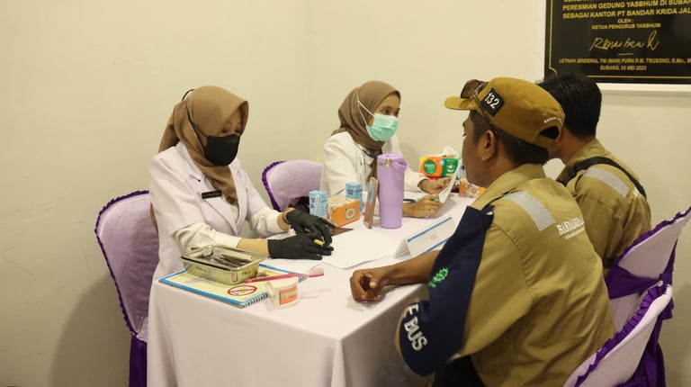 PT. Bandar Krida Jala (BKJL) partnered with Pusakanagara UPTD Community Health Center to conduct a Free Health Screening Program (PKG) at the BKJL office in Kotasari Village, Pusakanagara District, Subang Regency. The program served all BKJL employees and local residents.